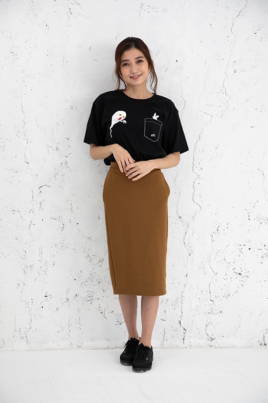 めがねうさぎ (Mサイズ)ポケット Tシャツ(ブラック)