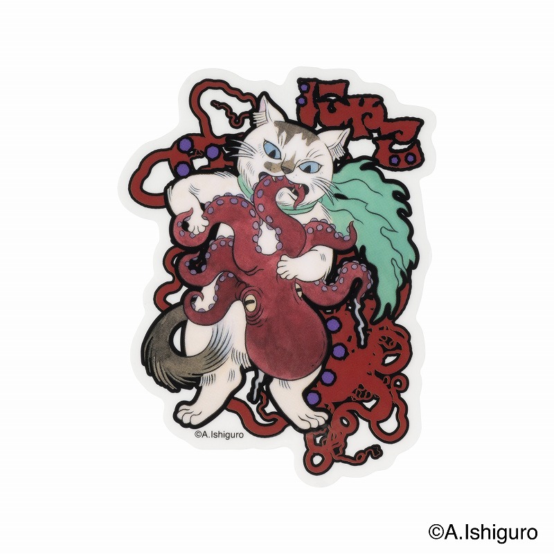 ばけねこだらけ スマホに貼れるサイズのステッカー (槌猫)